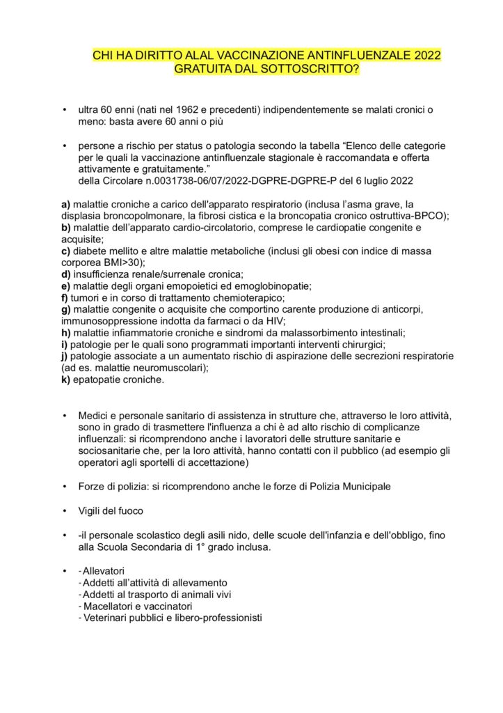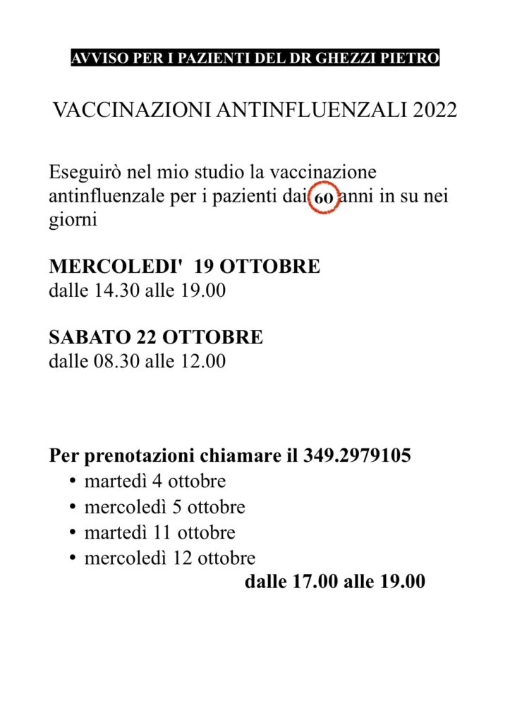 Comunico che eseguirò nel mio studio le vaccinazioni antinfluenzali nei giorni di